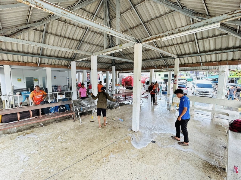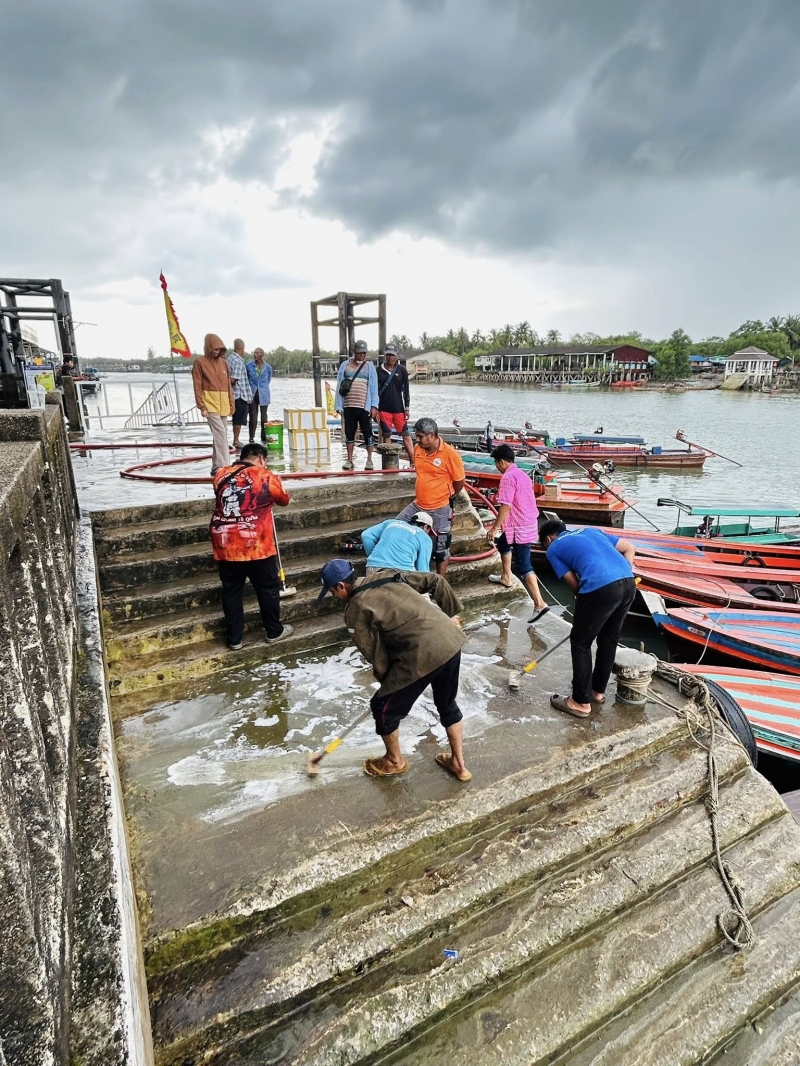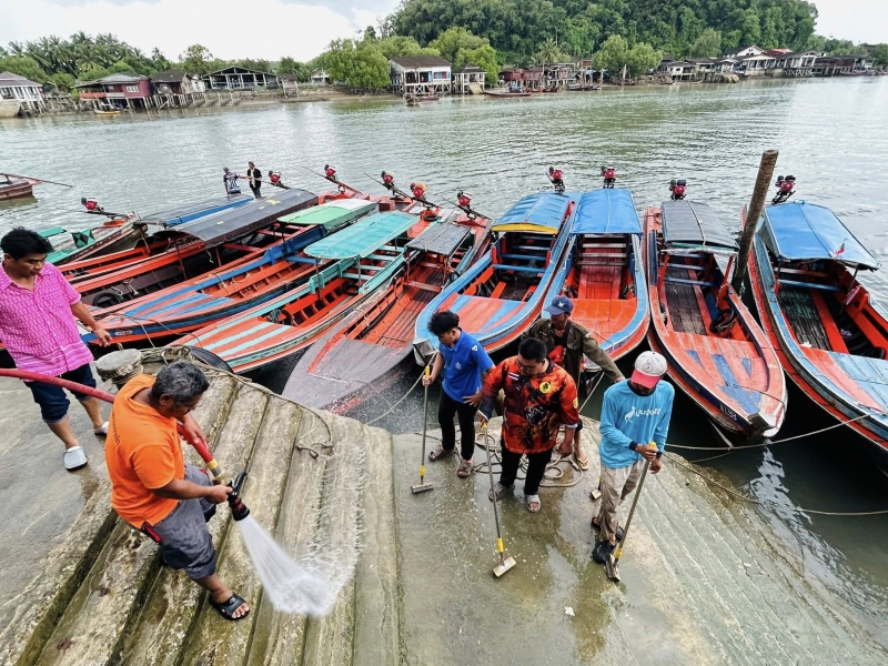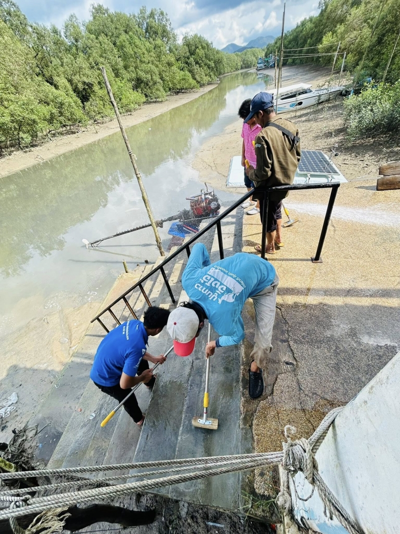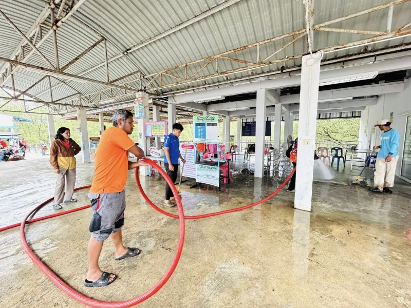ดำเนินการขัด ล้าง ท่าเทียบเรือเกาะพยามและท่าเทียบเรือสะพานปลา (ระนอง - เกาะสอง)